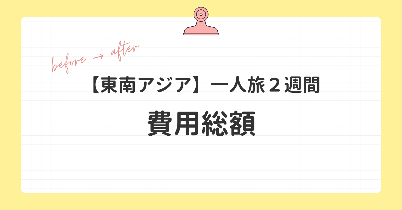 以上が、2週間、東南アジアを3か国、ひとり旅をして実際にかかった費用です。